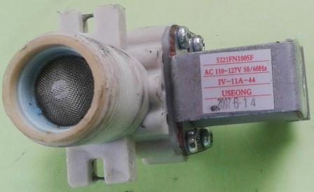 En la imagen se muestra la electro-válvula de una lavadora automática LG desarmada mostrando todas sus partes componentes.