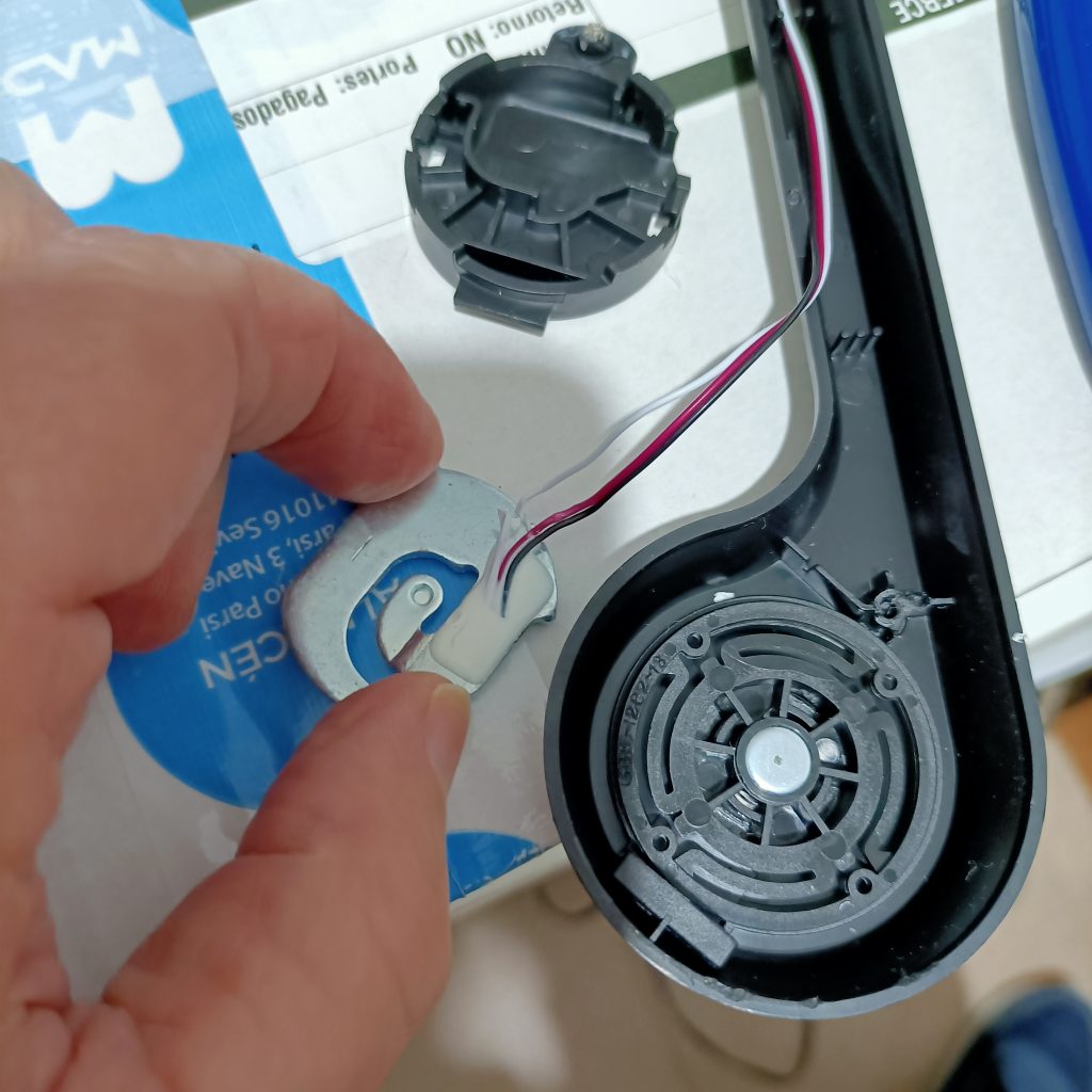 Al reensamblar la báscula electrónica se cuidó que ningún conductor quedase mal colocado situando los mismo en los espacios provistos en los plásticos del equipo.